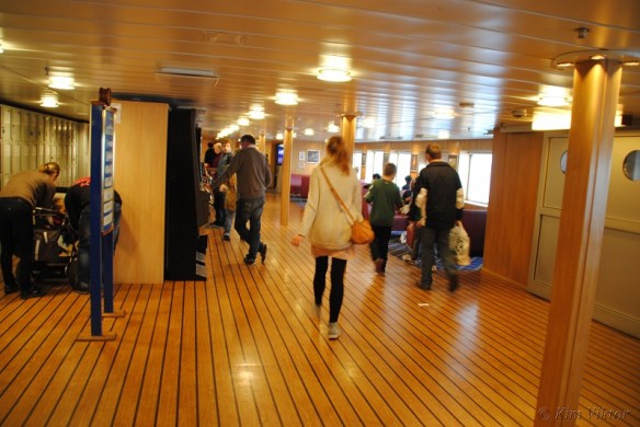 Det var ingen trängsel på billdäck, ett tiotal personbilar och 3 bussar körde av färjan.
