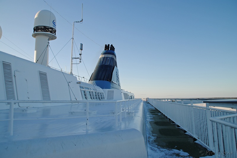 Sen var det dags att bege sig ut på däck för att spana in ankomsten till Mariehamn.