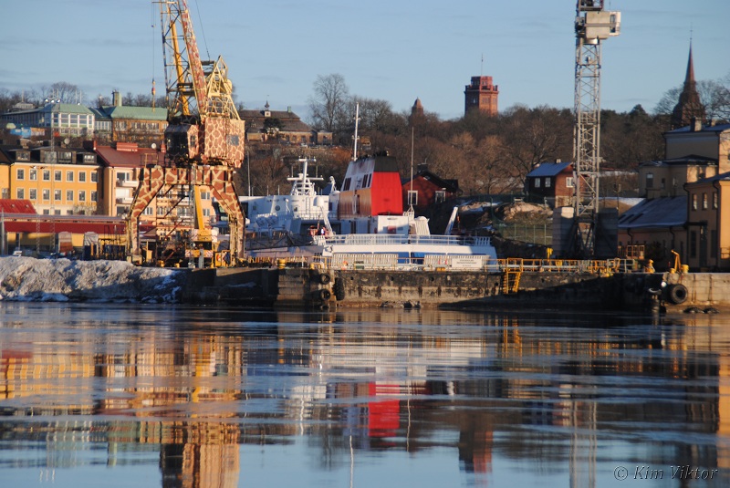 Gotlandia II i dockan på Beckholmen. Snart är det dags för giraffkranen att flyttas till Masthamnen.