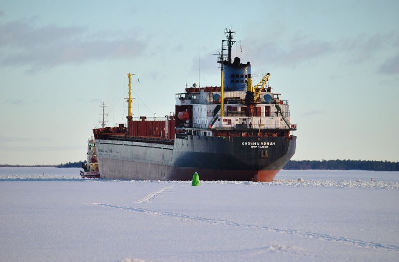 Dom fortsätter bort mot Sandskär LKAB kajen där hon ska lasta malm.