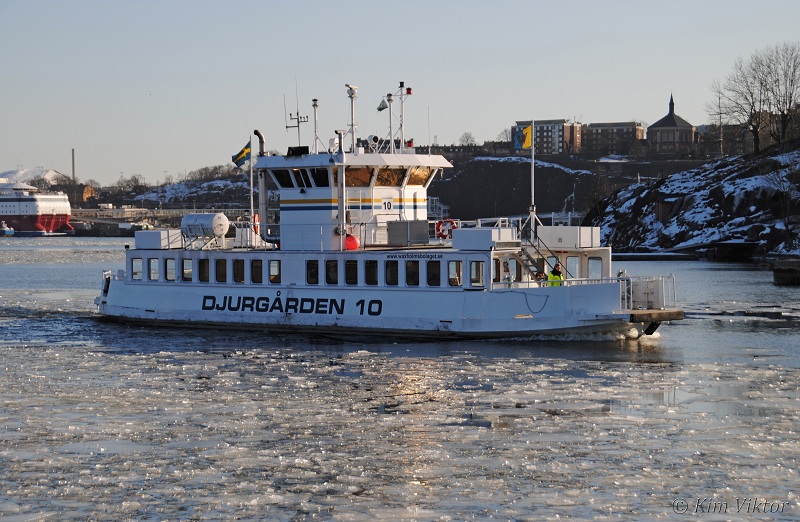 Djurgården 10 på väg in mot Skeppsholmen. Nu är det slut på linjen mellan Slussen-Fotografiska-Skeppsholmen. Hoppas att politikerna kommer med bättre förslag nästa gång.