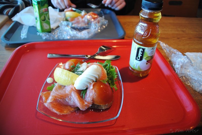 Ute på Ålands hav passade vi på att ta en lunch, för min del blev det en laxsmörgås. I övrigt var väl inte utbudet i cafeteria något att hurra över, t.ex. fanns det ingen ansjovissmörgås.