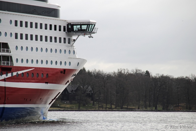 Närstudie av fören, här ser man även hur mycket bryggvingen sticker ut.