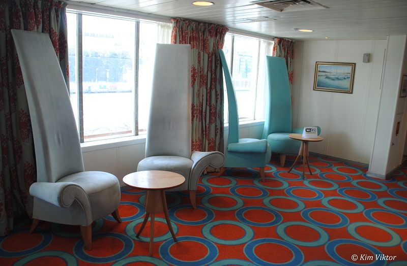 Biblioteket är mycket större än vad jag är van med från de stora kryssningsfartygen. Casinot däremot var minimalt, säger väl en del om passagerarna ombord….