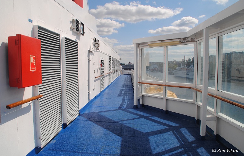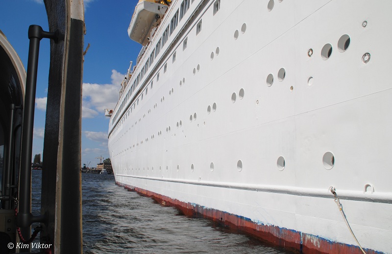 Drottningen visar upp sin vackra sida, fast vacker är hon egentligen inte. De där däcken ovanför bryggan skulle behövas tas bort. 😉