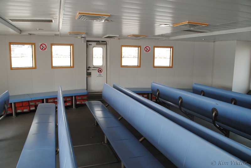 Tänk att jag brukar klaga på Hammarby sjöstads-båten Emelies tråkiga inredning, men denna färja är nog ännu värre…. Känns som ett sjukhus….
