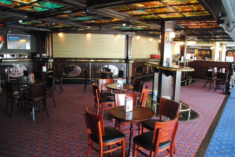 Puben ombord, senare under kvällen var det väldigt livat här. Så här kändes det rätt trångt. Men när det bara finns en pub och fun club för folk att vara i under de sena timmarna, så är det ju klart att det blir trångt. Jag ska docka tillägga att fartyget var i princip fullbokat också.