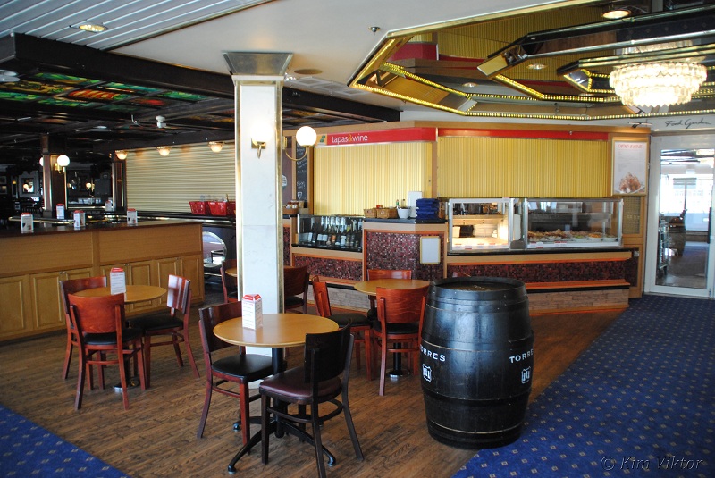 Tillbaka till arcaden på däck 8. Tapas & Wine serveras just Tapas under kvällen för att sedan blir ett nattcafé med mackor. Utbudet av Tapas var inte lika stort som det är på Amorella och Mariella.