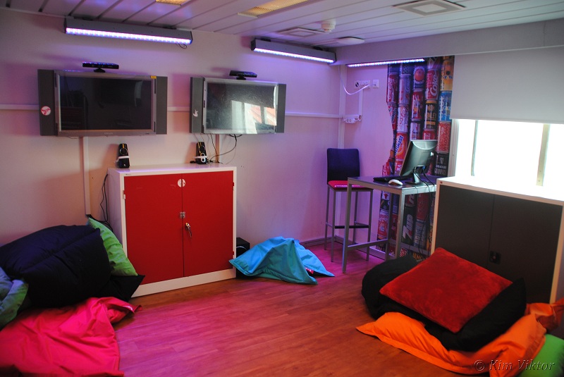 På däck 9 har de öppnat ett rum för tonåringar, istället för vilstolarna som fanns här förut.