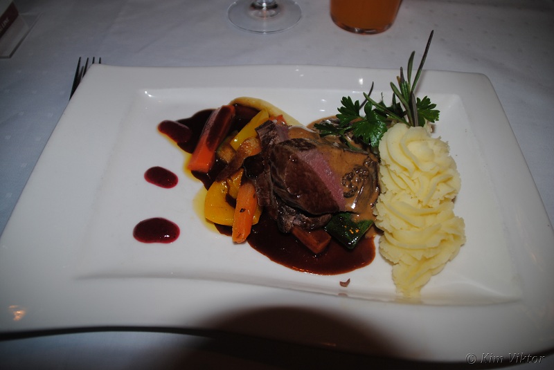 Huvudrätt: Hjortrygg med mandelpotatispuré