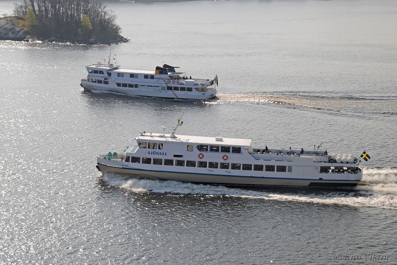 Sjögull och Roslagen. Roslagen svängde strax efter in i Skurusundet, för att fortsätta till Nämdö.