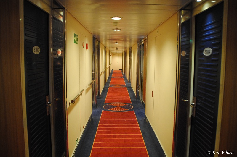 Min B-hytt låg längst akterut på däck 5. När fartyget väl började röra på sig så kände man rätt så kraftiga vibrationer. Man kanske ska börja sälja dessa hytter som massagehytt? 😉