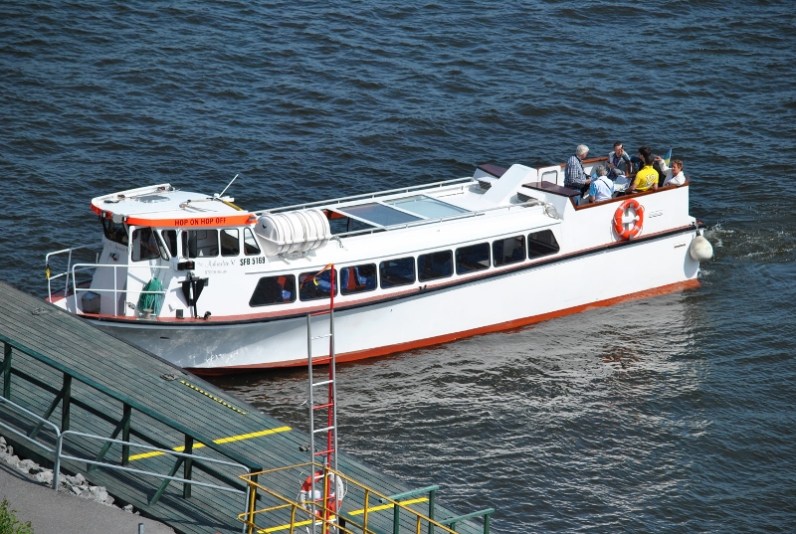 Hop on hop off båtarna hämtar upp passagerare från Aidamar