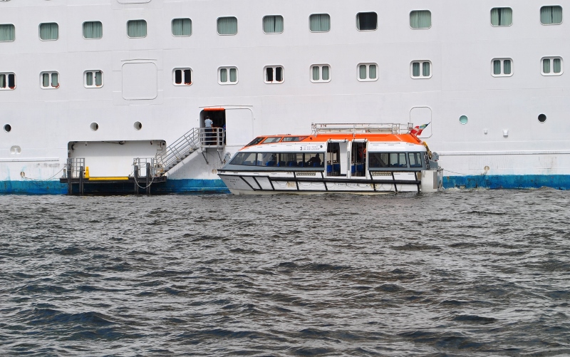 Tenderbåtarna kör fram och tillbaka.