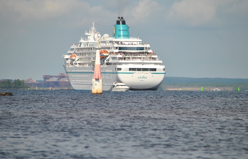Stor fritidsbåt ser liten ut bredvid Amadea