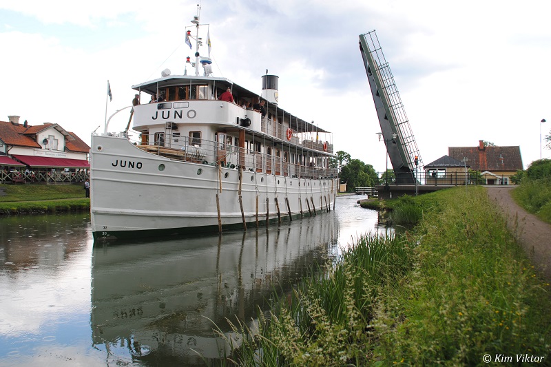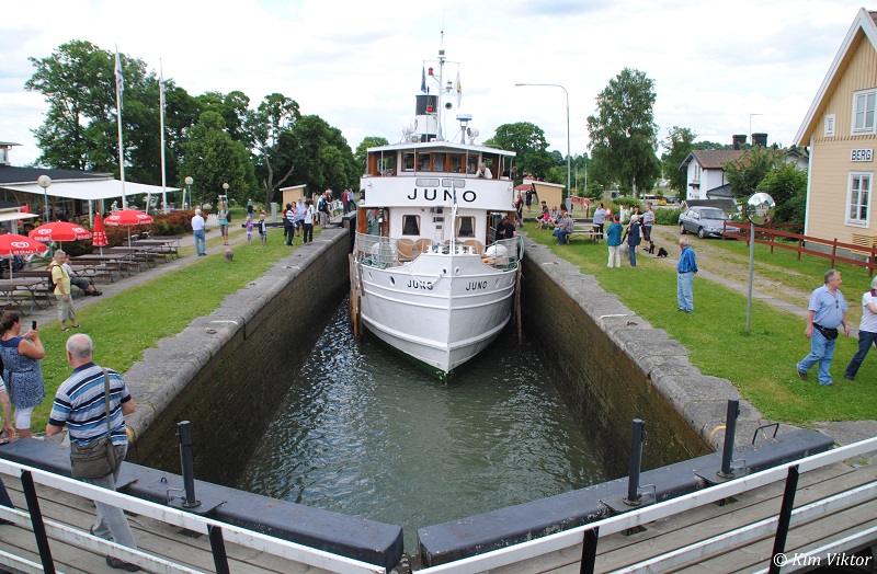 Men först gjorde vi ett kort stopp vid Bergs slussar för en sillunch och lite fotografering. Passande nog var Juno på väg upp genom de 7 sammankopplande slussarna. När hon hade passerat samtliga slussar hade hon hamnat 18,8 meter över vattennivån på sjön Roxen (innan slussarna).