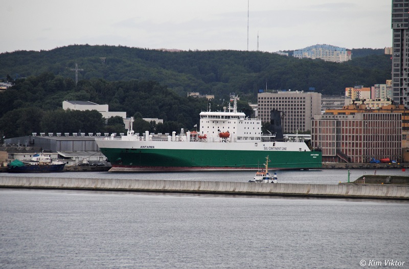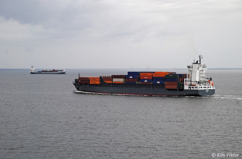 Conatinerfartyget Akacia på väg ut från Gdynia.