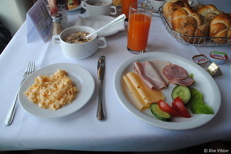 Nästa morgon började med en frukost i restaurang Vivaldi, men den var en stor besvikelse. För 66 kronor fick man en korg med börd, en tallrik med pålägg och lite yoghurt, samt att man kunde välja en varm rätt, äggröra eller stekt ägg med korv. För detta betalde man alltså nästan 70 kronor, helt hutlöst. Då betalar jag hellre 90 kr ombord på Viking Line.