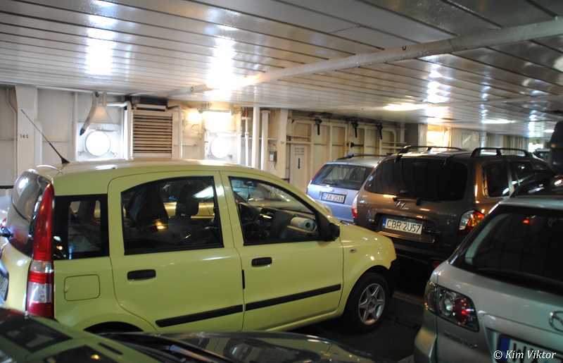 20 minuter innan avgång fick vi äntligen köra ombord. Vår bil hamnade uppe på personbilsdäck på däck 5.