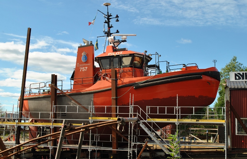 Hon ser ganska maffig ut på land med sitt stora djupgående.