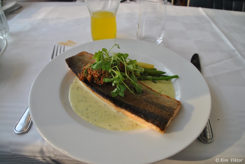 Ombord fick vi en 3-rätters som för min del bestod av: Toast skagen, röding och fläderblomspannacotta.