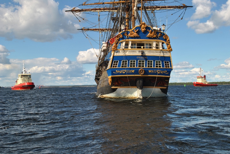 Bogserbåtarna Viscaria och Valkyria sluter upp i eskorten.