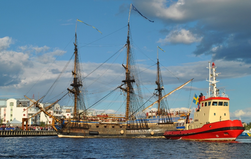 Bogserbåtarna hjälper till att knuffa med propellerströmmarna antar jag.