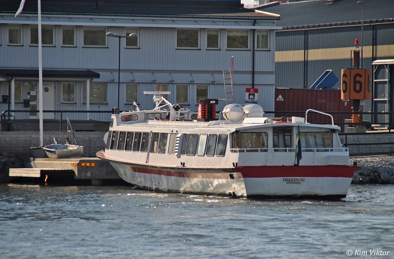 Delfin IX lämnade av kryssningspassagerare, men hon fick snällt flytta på sig när Kanholmen kom.