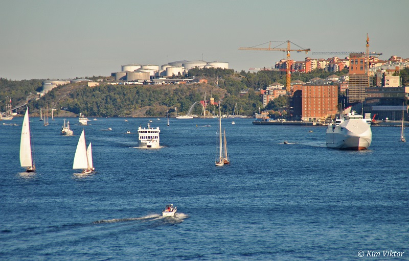 Gotlandsfärjan på väg in mot Beckholmen, för det planerade varvsbesöket.