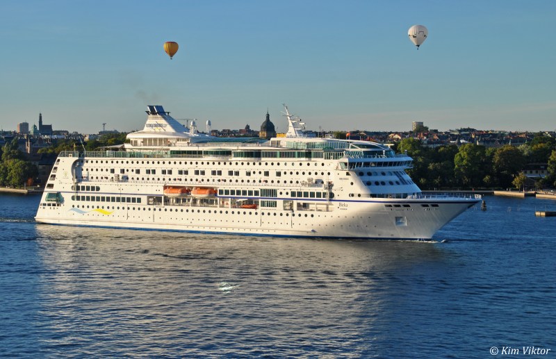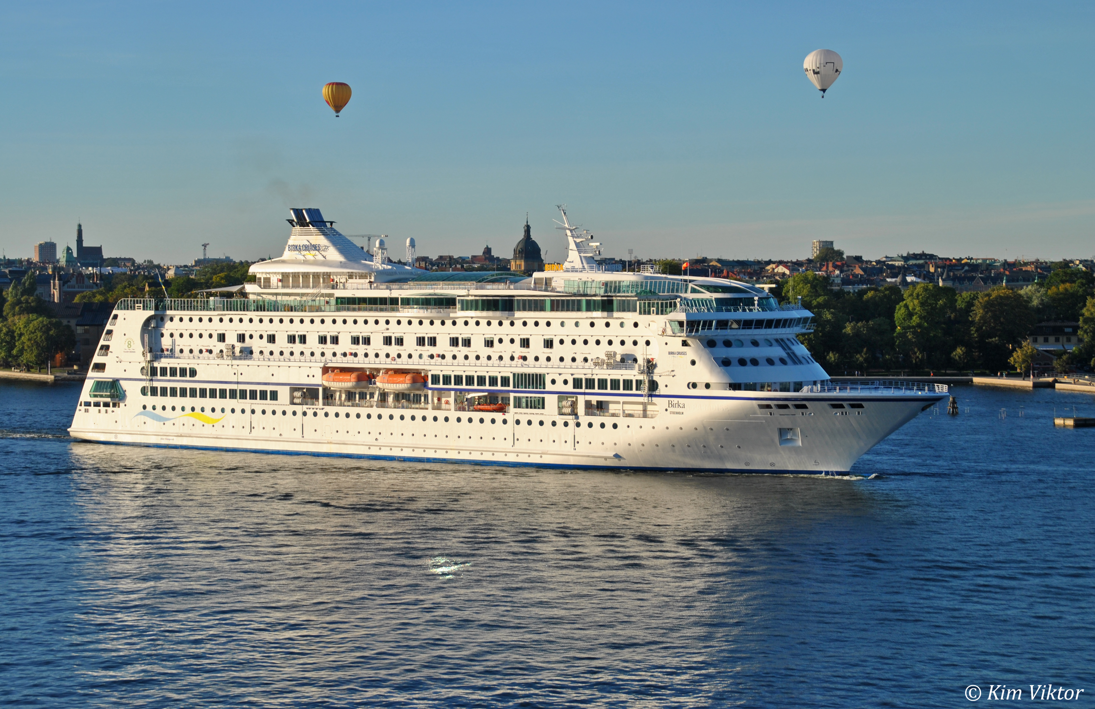 Birka Stockholm avgår samtidigt som ballonger flyger över stan.
