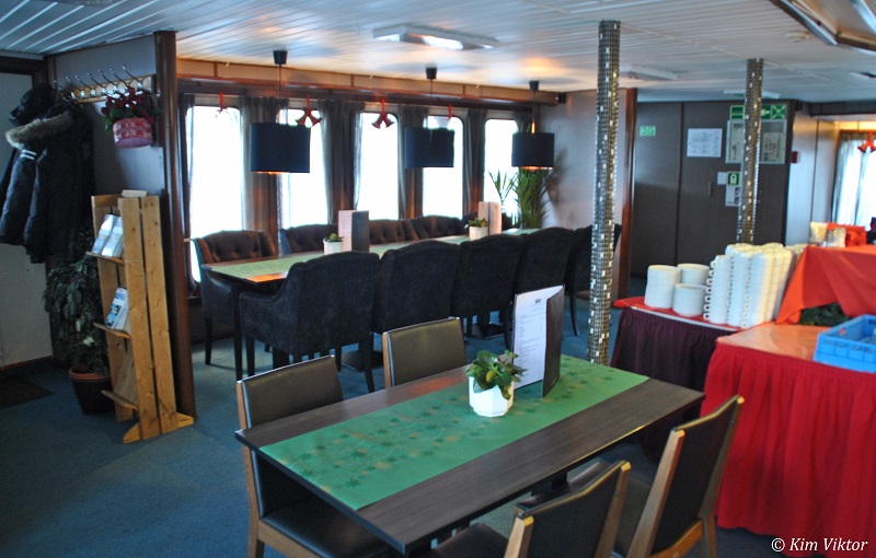 Ombord fick vi sittplats i mittsalongen på huvuddäck.