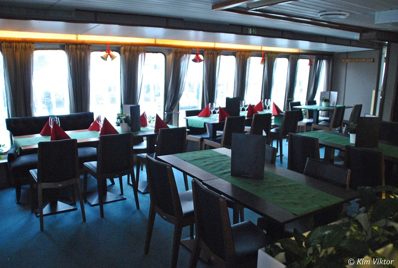 Väl besatt var det absolut inte. Vi var väl som mest 100 personer ombord, det var bara 2 av fyra salonger som användes. Dock var det lugnt och skönt, inget stim som det ibland kan bli på julbord.