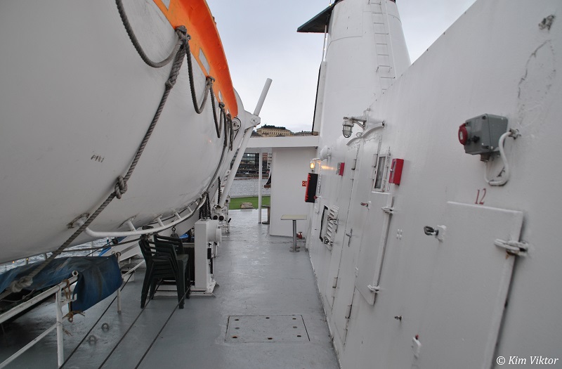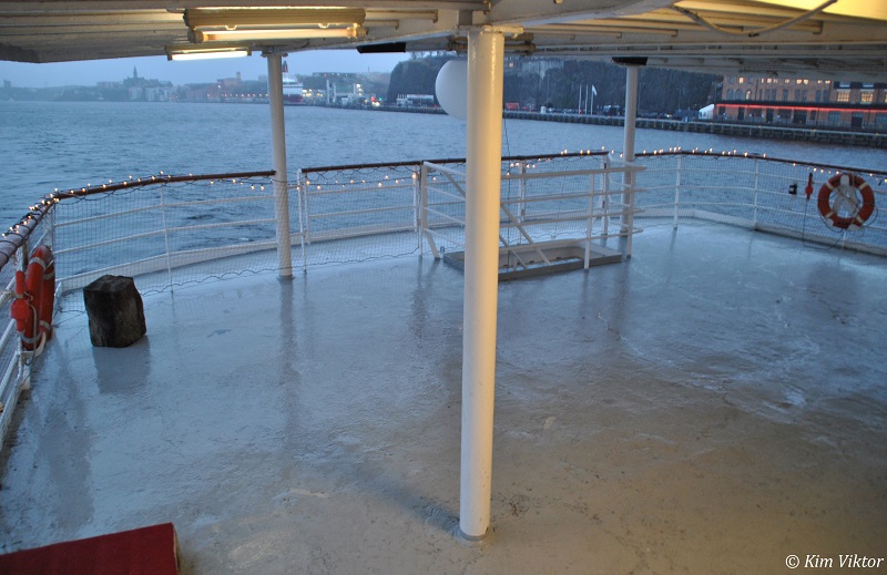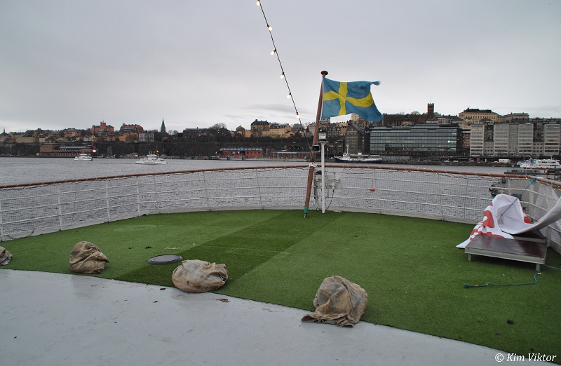 Dags att beskåda utedäcken. En liten gräsmatta ute på akterdäcket. Jag antar att det är spår från Saga Lejons tid som restaurang i Norrköping i somras.