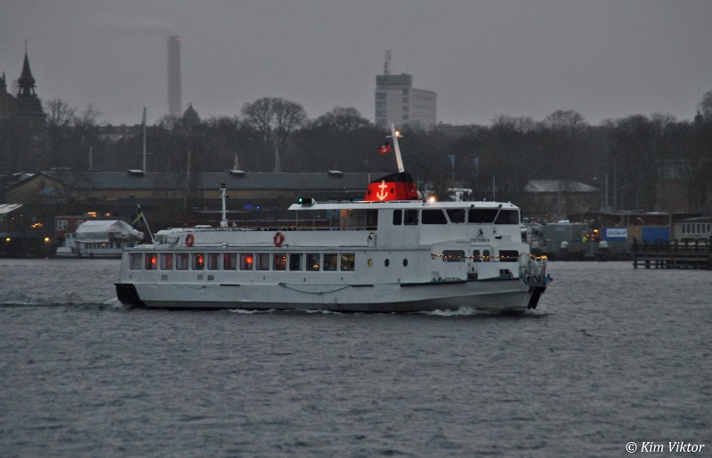 Möte med Mälar Victoria som går i skyttetrafik till julborden på Fjäderholmarna.