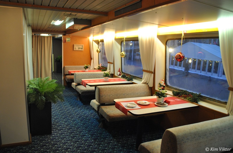 När vi väl hade lagt till vid kaj, så vi fick vänta i 15 minuter för att betala våran dricka. Det tog lång tid att ta betalt av alla eftersom de flesta inte hade betalat julbordet i förtid. Annars var servicen bra med trevliga servitörer.