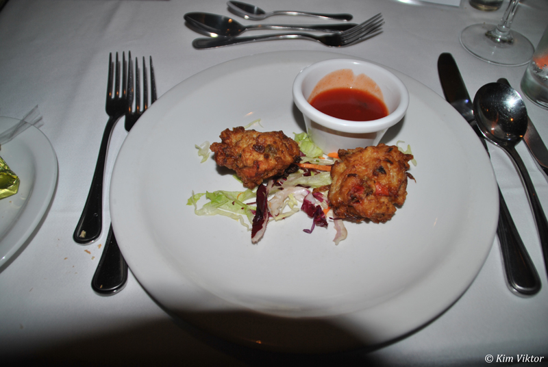 Efter en lång dag iland smakade det gott med middag, bl.a. friterat krabba.
