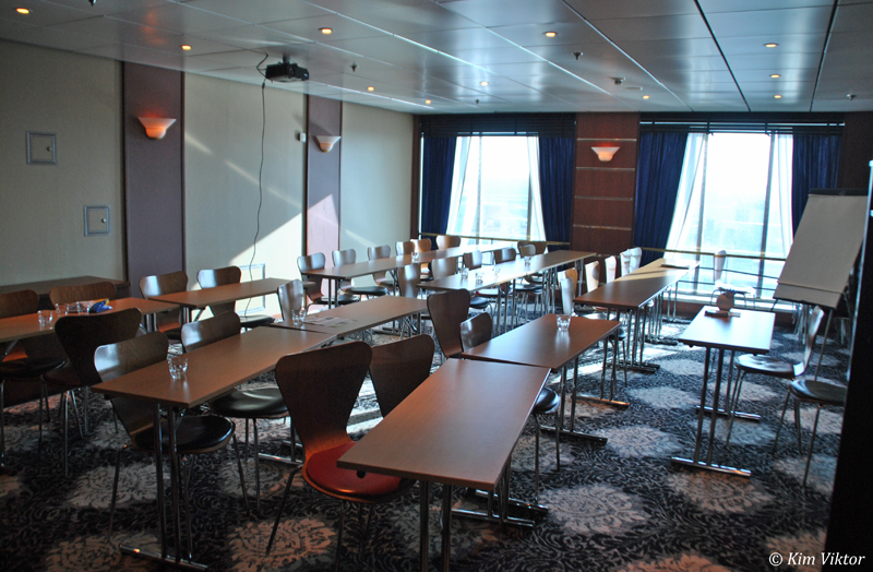 Vi fortsätter vår rundvandring på däck 8. Intill den förliga baren finns en mindre konferenseavdelning.