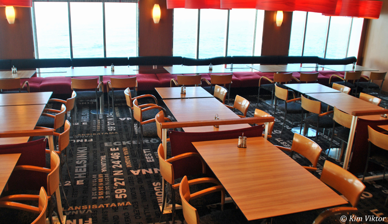Längst akterut på däck 8 och 9 finns cafeterian. (På bilden en inglasad del för stora sällskap, kan även användas till buffén.)