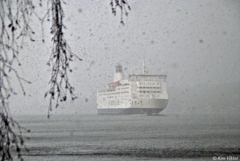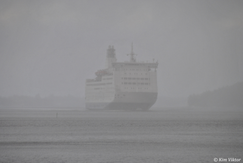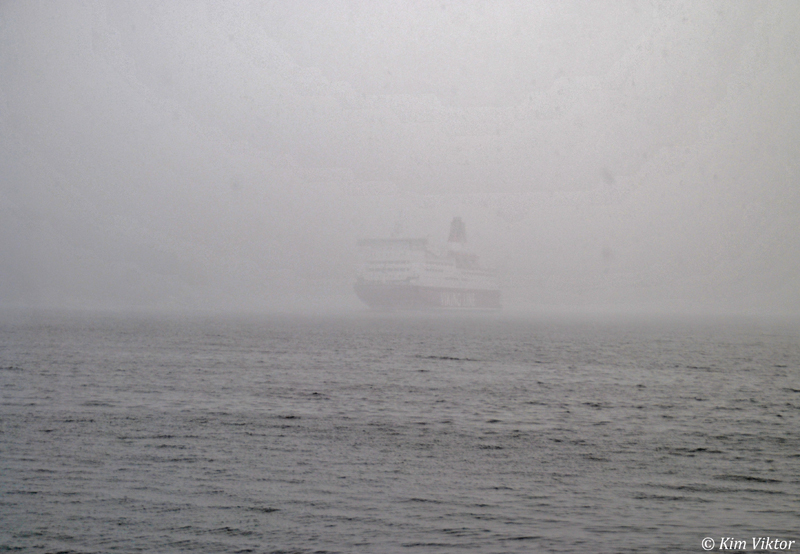 Det visade sig att jag hade valt en perfekt plats att fota på. Eftersom sikten var rätt så dålig, så var det tur att fartygen möttes mitt framför näsan på mig.