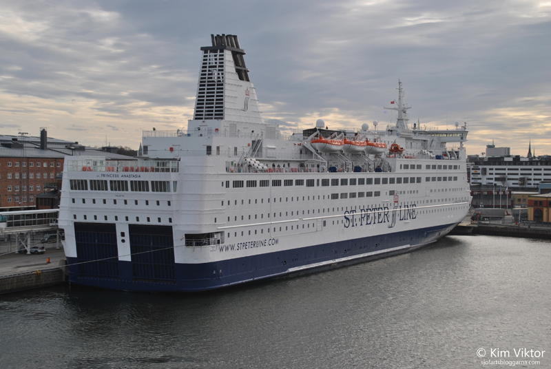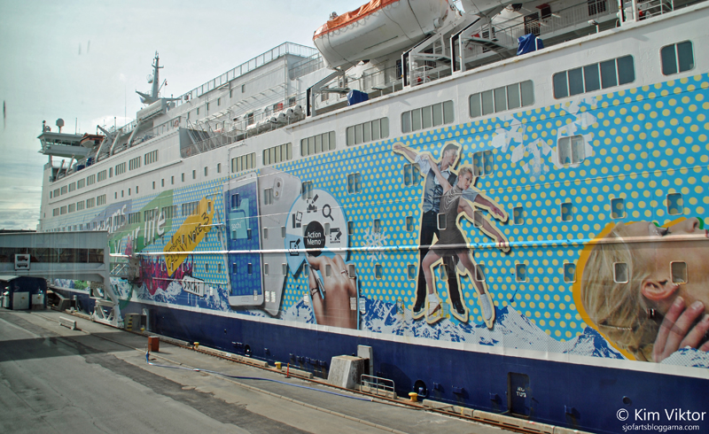 Incheckningen gick chockerande snabbt, vi använde oss av en av de fungerande incheckningsautomaterna, väldigt smidigt med dessa automater. När vi skulle gå ombord, så gick vi förbi Princess Anastasia som har kvar sin OS-målning.