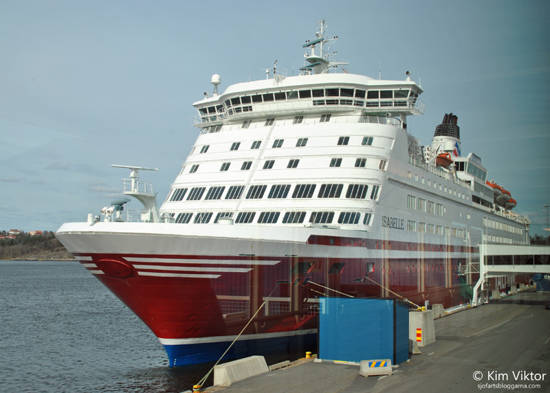 Isabelle i Frihamnen. Man kan ju se att de målat vissa fläckar på skrovet under varvsbesöket, i början av april. Någon som ser hur många nyanser av rött som finns på skrovet nu? 😉