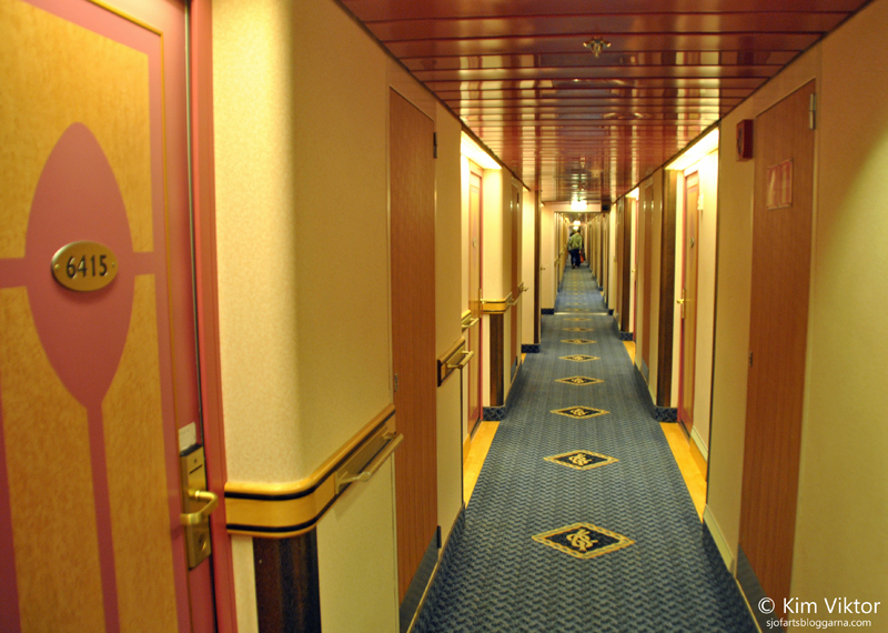 Hyttkorridoren utanför, tyvärr hamnade vi inte i den lugnaste korridoren, det var en del liv här under natten.