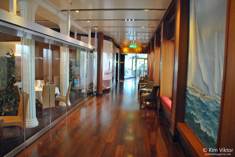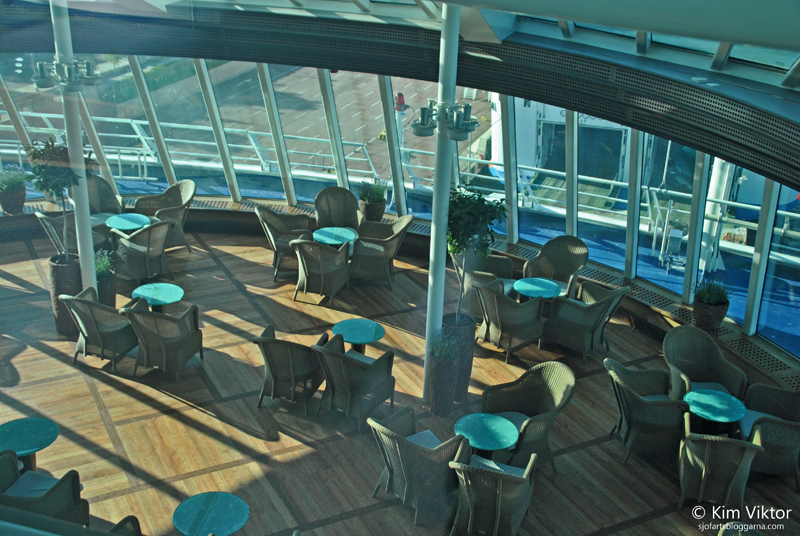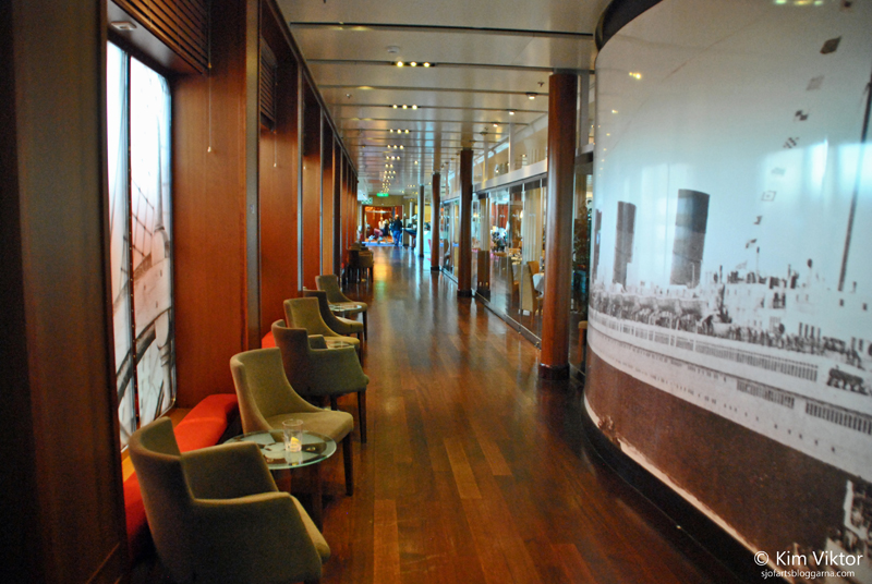 Efter maten var det dags att leta upp panoramabaren, här arcaden på däck 10, med SPA till höger.