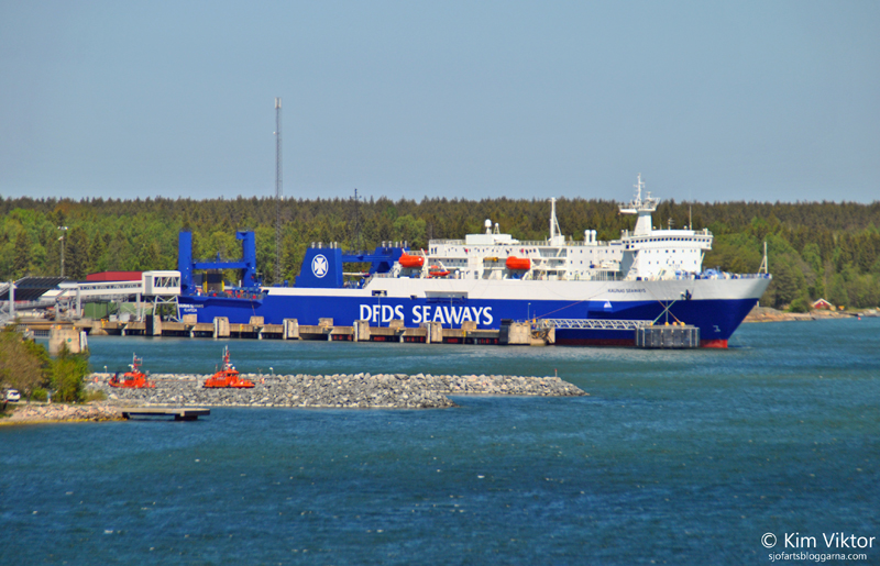 Estlandsfärjan Kaunas Seaways och i förgrunden den nya lotshamnen (som är en del av Kapellskärs ombyggnad).