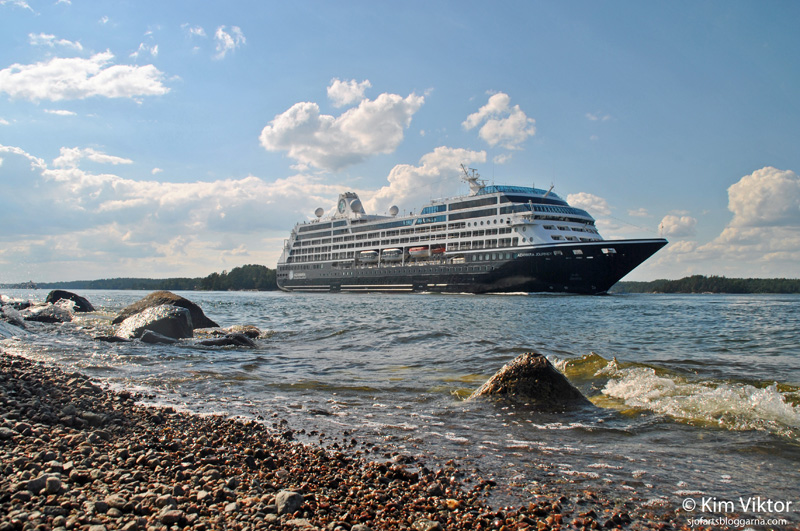 Den 18 juli var jag ute på landet på Vindö, då passerade Azmara Journey på utgående.