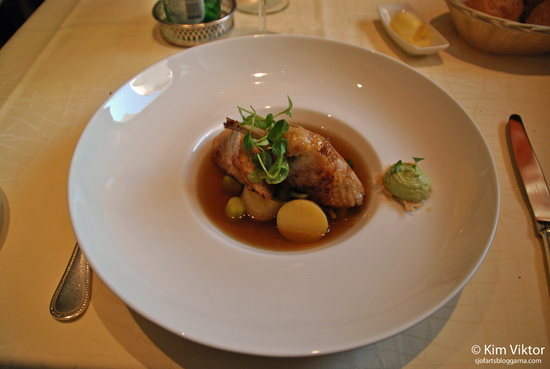 Till varmrätt blev det pärlhöna. Maten smakade underbart (framför allt förrätten) och servicen var också toppen samt att det är så skönt att sitta och äta middag i en lugn restaurang.