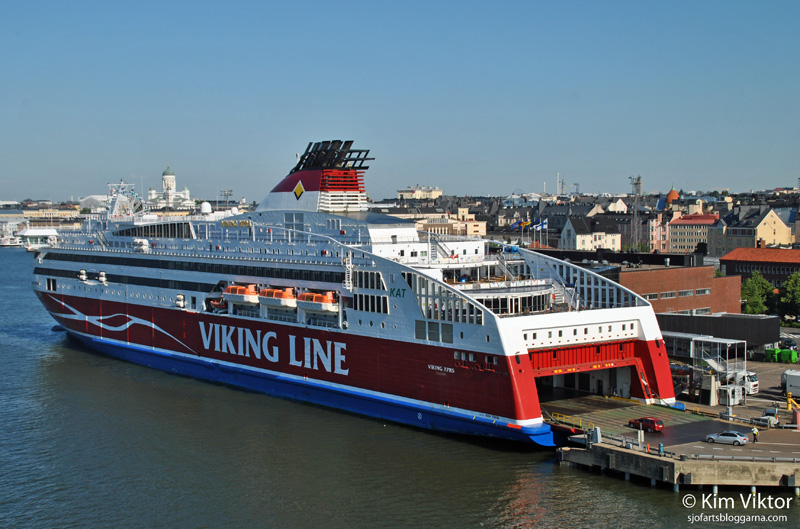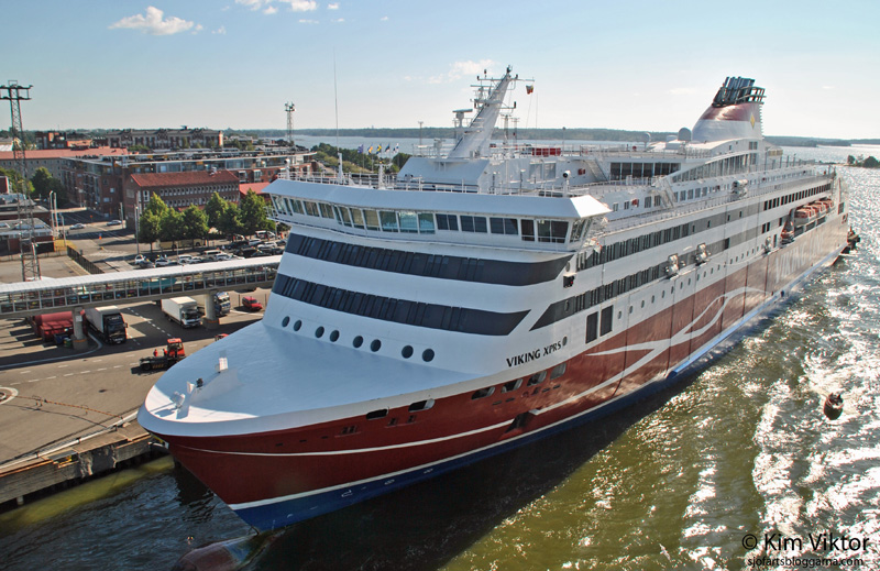 På ingång till Södra hamnen i Helsingfors, där Viking XPRS redan låg inne.