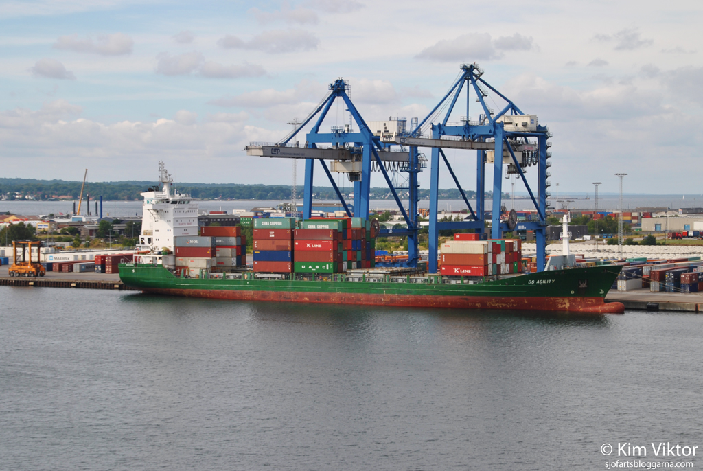 Det var tomt i hamnen denna dag, men ett containerfartyg låg i alla fall inne.