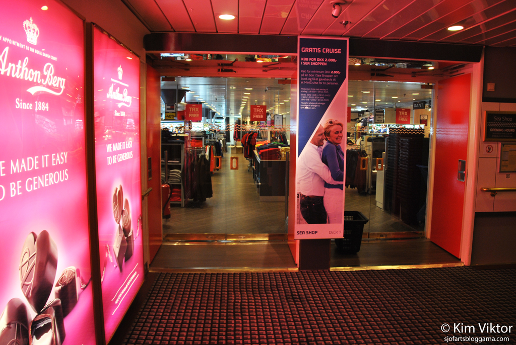 Sea shop, först kommer en klädaffär och längre in själva tax freen. Men ingång och utgång sker på samma ställe.