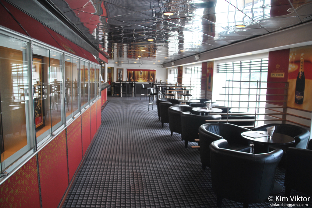 Champagnebaren i fören på däck 8. Framför ligger Little Italy, Blue Riband och Marco Polo.